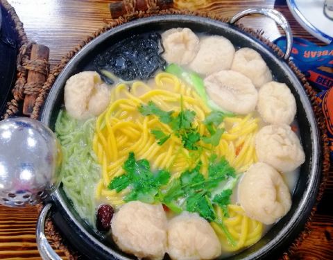 朋友开车带我们来这里吃中午饭,来到后觉得好眼熟,之前貌似系叫其它名的,吃竹筒蒸菜的。现在转变成另外一种方式的农家菜。门口的左手边系半开放式厨房,可以睇见厨师忙碌的身影,门口还有几个自传的锅在煮菜。 餐厅内有好多位置,我们选择坐露天位,可以睇倒池塘。朋友点了几个特色菜。 上汤桑叶,第一次吃桑叶,味道还不错,叶都是比较嫩的,汤也很好饮。 凉拌支竹,尼度的支竹都系自制的,可以系厨房见倒还在晾干的新鲜支竹,豆味很香。 烧排骨,很大,直接用手撕来吃,味道有d欠缺,唔多够味。 墨鱼饼,足料,味道不错。 木瓜冻,清甜。 马拉糕,Q弹,味道适中。 这里的价格也比较实惠的。
