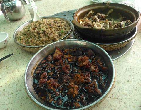 朋友开车带我们来这里吃中午饭,来到后觉得好眼熟,之前貌似系叫其它名的,吃竹筒蒸菜的。现在转变成另外一种方式的农家菜。门口的左手边系半开放式厨房,可以睇见厨师忙碌的身影,门口还有几个自传的锅在煮菜。 ...朋友开车带我们来这里吃中午饭,来到后觉得好眼熟,之前貌似系叫其它名的,吃竹筒蒸菜的。现在转变成另外一种方式的农家菜。门口的左手边系半开放式厨房,可以睇见厨师忙碌的身影,门口还有几个自传的锅在煮菜。 餐厅内有好多位置,我们选择坐露天位,可以睇倒池塘。朋友点了几个特色菜。 上汤桑叶,第一次吃桑叶,味道还不错,叶都是比较嫩的,汤也很好饮。 凉拌支竹,尼度的支竹都系自制的,可以系厨房见倒还在晾干的新鲜支竹,豆味很香。 烧排骨,很大,直接用手撕来吃,味道有d欠缺,唔多够味。 墨鱼饼,足料,味道不错。 木瓜冻,清甜。 马拉糕,Q弹,味道适中。 这里的价格也比较实惠的。