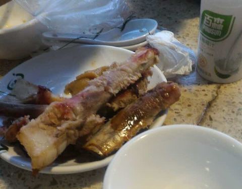 - 烧排骨,很大,直接用手撕来吃,味道有d欠缺,唔多够味。朋友点了几个特色菜。 墨鱼饼,足料,味道不错