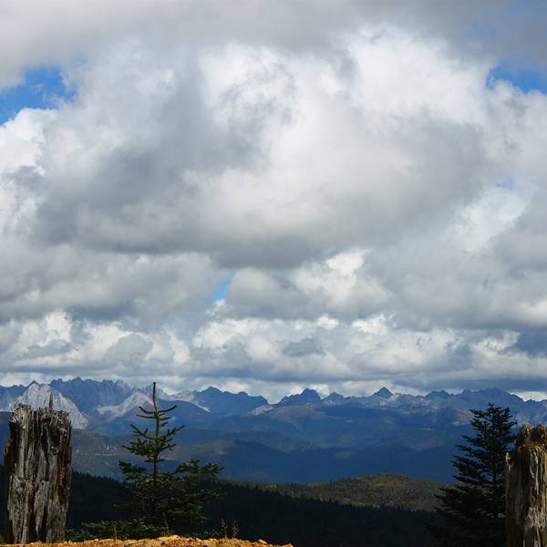 通往碧沽天池的路真的相当坎坷,一路颠簸,有些路根本就不成路,可见这个地方是如此的天然。那里什么设施都没有,需要自备干粮。一路风光无限好,偶尔还有牛羊站在路中间。颠簸了将近2小时,才把车开上去。明明去的路上还是大晴天,可是到达之时竟变成阴天飘雨。在海拔4000多米的山上,不是一般的冷。补充点干粮之后,我们开始沿湖探险。