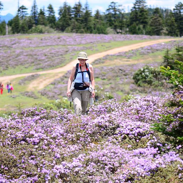碧沽天池的杜鹃花都是成林成片的杜鹃,花冠硕大,色泽多样,姿态各异碧沽天池的杜鹃花都是成林成片的杜鹃,花冠硕大,色泽多样,姿态各异。白的雅洁,黄的高贵,红的热情,一朵朵一片片,碧沽天池因为海拔大概在3700,这里都是高山杜鹃!