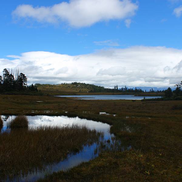 湖边都是湿地,看着都是草,实际上一脚踩下去全是水。我们蹑手蹑脚地往前走,由于我穿的是帆布鞋而他们都穿登山鞋,我很快就落后了。到了某个地方时,我完全走不下去,草地太软了。趁我的鞋子还没全湿,我说我在原地等你们吧。可是胖纸不让,非要我坚持。于是我收拾心情,看准了一小草堆跳过去,没想到那里完全是软的,冲力使我半条腿陷了进去,而另一只脚也陷进了整个脚掌。我完全无法自己拔出脚,越挣扎陷得越深,支撑脚已经累得发抖,眼看就要整个人平躺了。这时胖纸在远处急急忙忙赶过来,其实我附近的湿地都是软软,胖纸又这么胖,不知道为什么他又一陷一拔地平安走过来并且把我救出来了!当时我都吓哭了,觉得很委屈,而且这么一来已经耗尽精力,又累又饿。胖纸只能陪我原路返回,到车上休息。雪上加霜的是,这个坑爹的大姨妈竟然还不知趣地找上门来。肚子痛,加上有点着凉,我回去就感冒了!