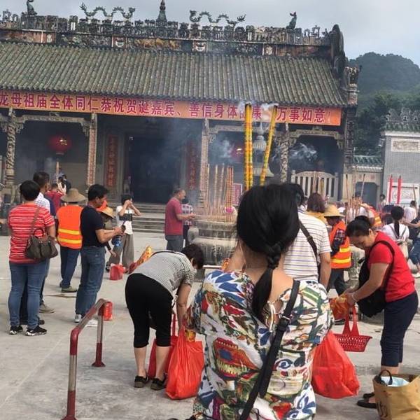 地方很干净很神圣,外面还能放鞭炮,外面的食市味道还是不错的,希望龙母娘娘保佑一家人平平安安,健健康康昨天去的时候还不算拥挤,拜龙母求子求女的还挺多的,拜完龙母还可以去敲一下大鼓,撞一下古钟,地方很干净很神圣,外面还能放鞭炮,外面的食市味道还是不错的,希望龙母娘娘保佑一家人平平安安,健健康康~