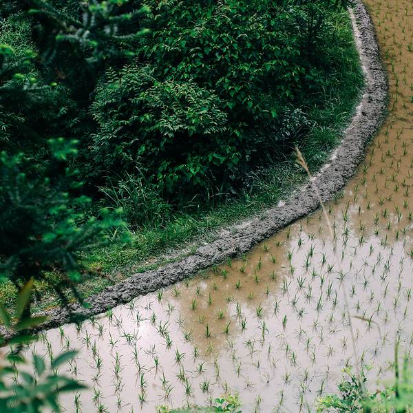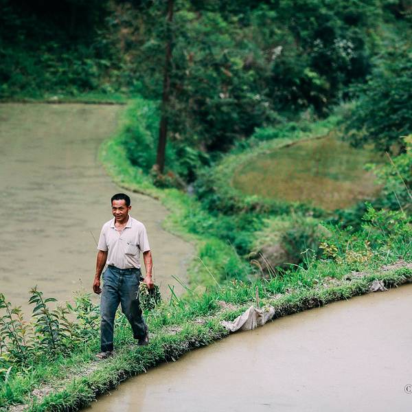 大哥则沿着窄窄的田埂一路摸索,去前面另一块田查看水深。农人,是靠天吃饭,靠水为生。但这收成的好坏,还看经验。