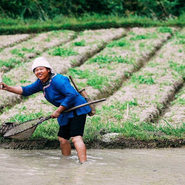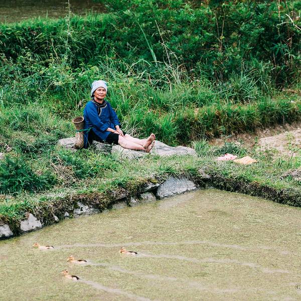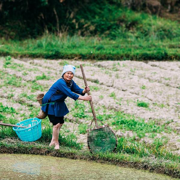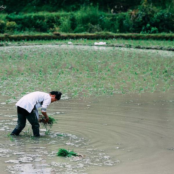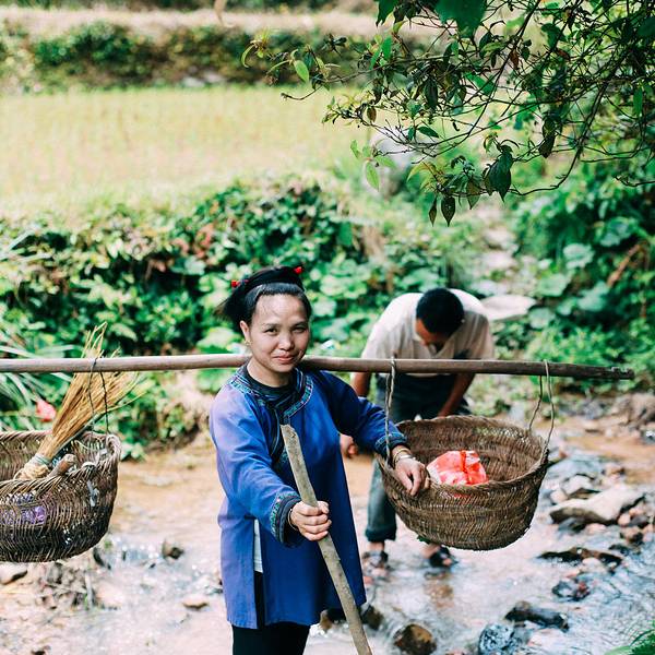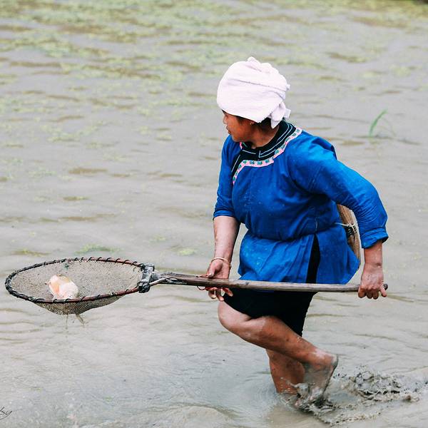走过溪流时,大姐担心我过不去,特意找好木棍递给我。到了田里,大姐放下竹篮,卷起裤脚,默默就去地里了。