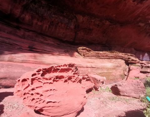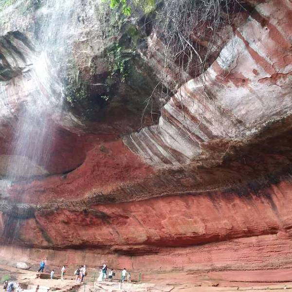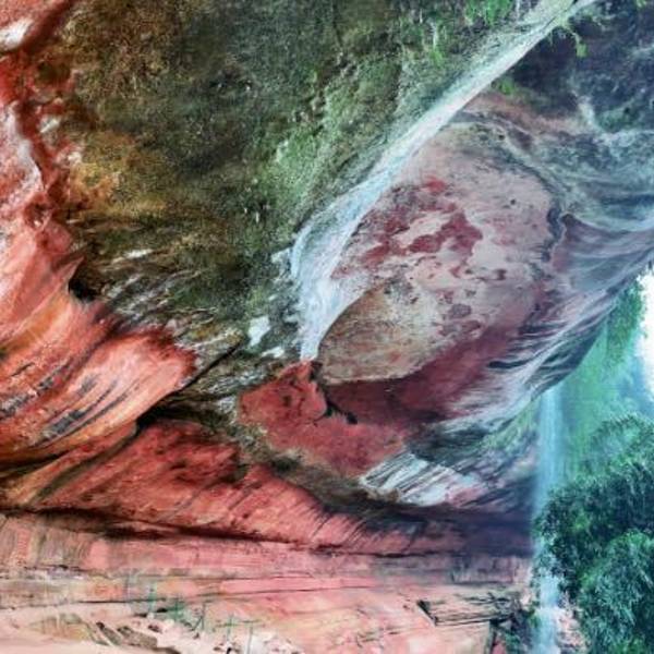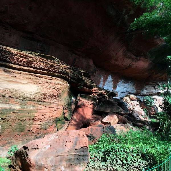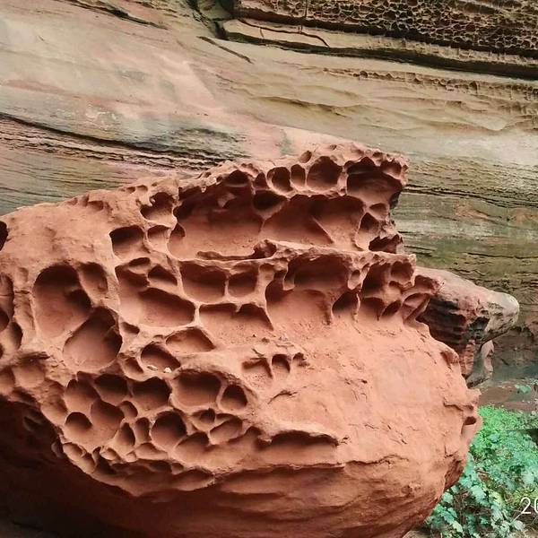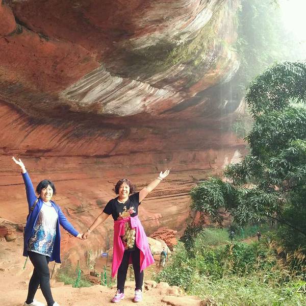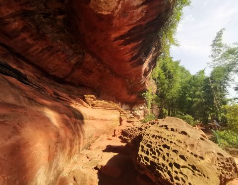 红石野谷是以红色蜂窝状的丹霞壁画石刻长廊为特色景观,同时桫椤戏水,一级更比一级高的瀑布相伴,我们认为赤水的景点里这里最惹人爱。
