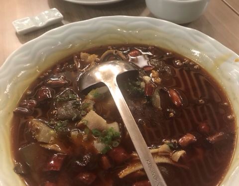 这可能是周村最高档的餐厅了,从进门的装修风格就看出来了。服务员管理的比较严格,这里菜品还不是以鲁菜为主,海鲜到是不少,各种新鲜海鲜,点菜的时,服务员非问非所答,国营饭店的风格,上菜速度也还可以,菜量出乎意外,以为会很大,反而刚刚好,而且都给公用餐具,中餐西吃,非常不错!