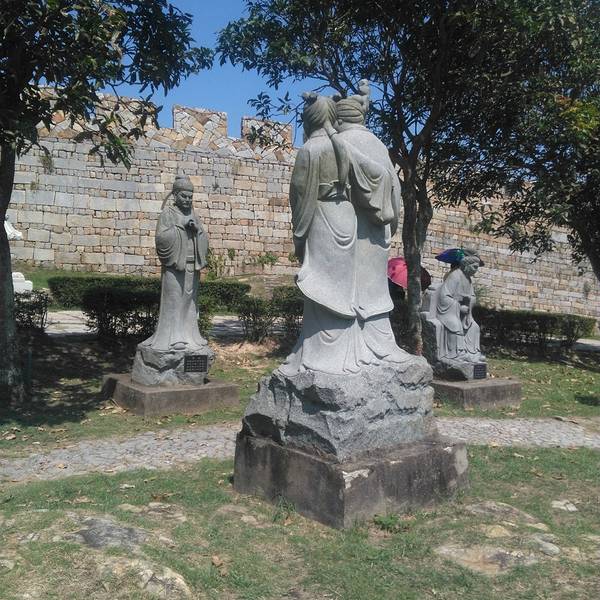 虽然这些东西不是先天有的,但也是当地部门花大量人力、武力造的,对推广文化还是一点作用的。其实雕像很多有三国人物,有十二金钗等等,可那些有名的雕像处合影人太多了,想十一这样的节日要拍没有人的照片可实属不易啊。