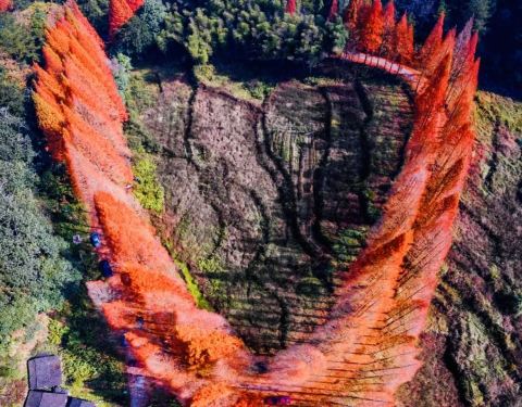 龙栖山自然保护区位于福建省三明市将乐县境内,总面积12600公顷,是一个以亚热带常绿阔叶林为主要保护对象的自然保护区。龙栖山可以说是福建最出名的赏秋圣地,每年的十一月中下旬,是最佳观赏时间。距离龙门检查站3公里处的村庄小沛,就是红叶最佳观赏位置。虽快入冬,水杉依然以最美的身姿最炫的色彩装扮着龙栖山,使龙栖山显得更加多彩靓丽 。