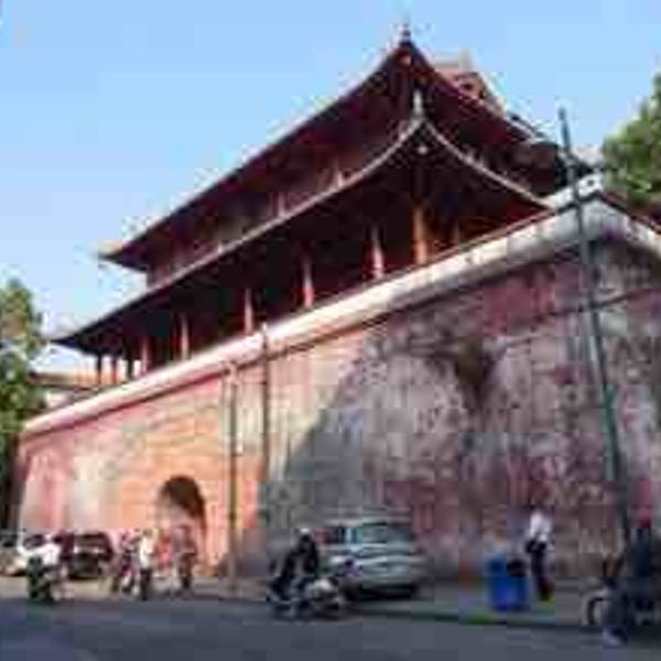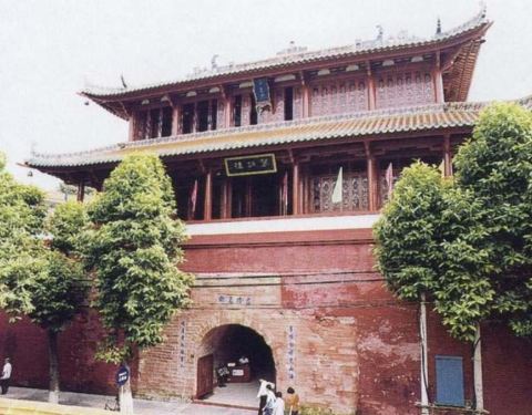 仍保存比较完好的古城门,还有城楼,门前就是马路,是老城历史古迹的重要一部分。