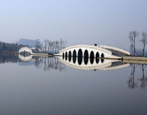 ...差,清晨到清风湖公园走走,公园面积很大,还有人造沙滩,三座九孔桥连接的长堤在朝阳下非常美丽……到东营出差,清晨到清风湖公园走走,公园面积很大,还有人造沙滩,三座九孔桥连接的长堤在朝阳下非常美丽……