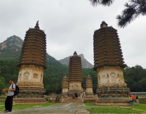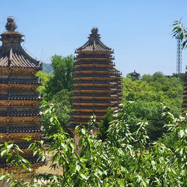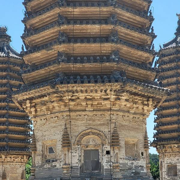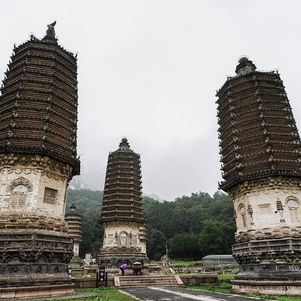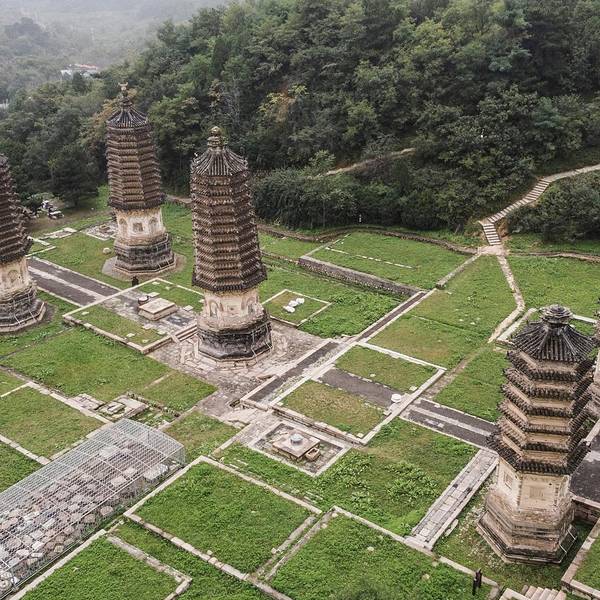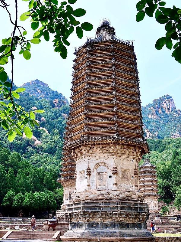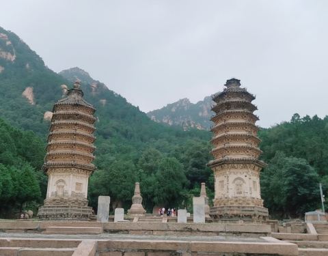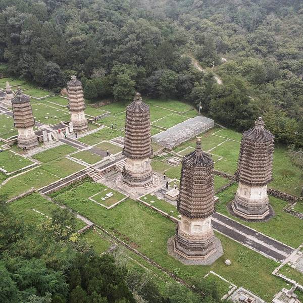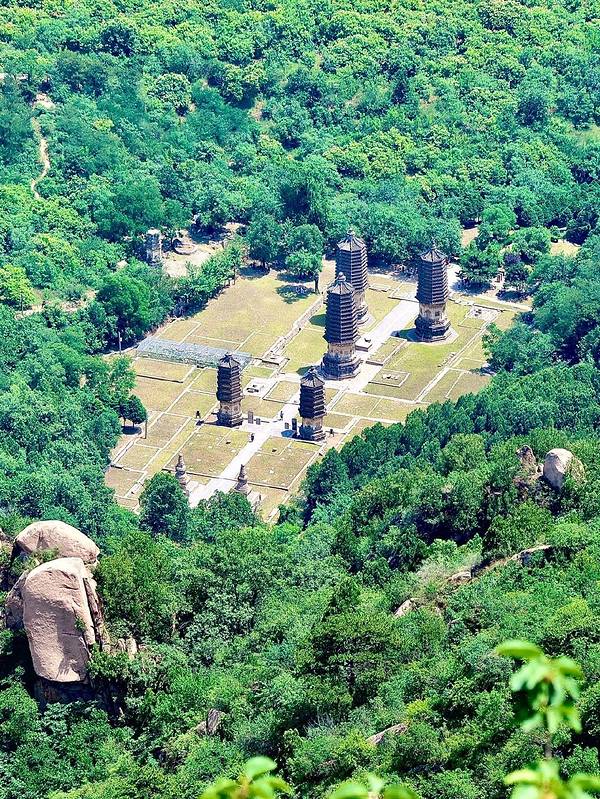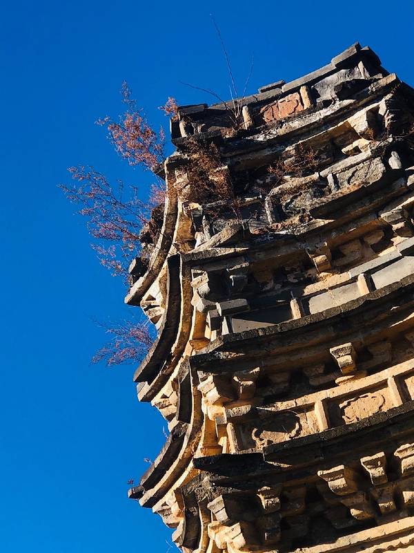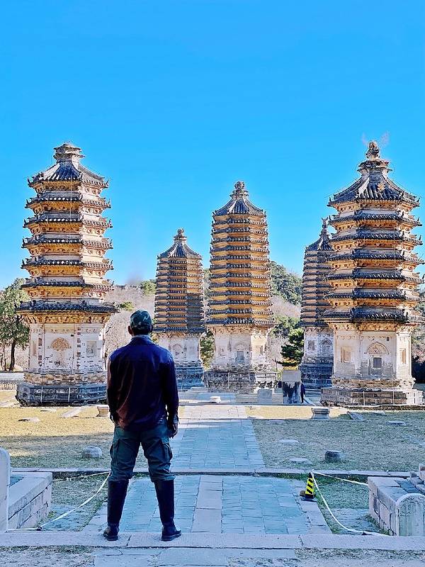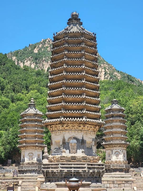 🛤踏入景区入口,穿过一片树丛,5座巨大的金代密檐式塔赫然映入眼帘。这方土地在唐贞观年间始建寺院;金天会年间佛觉大禅师海慧在此潜修并重建庙宇,陆续树立佛塔群,盛极一时。明正统二年(1437),英宗朱祁镇敕赐额“法华禅寺”。1941年,侵华日军进犯八路军北平根据地,寺庙毁于一旦,仅剩如今的地基和地上耸立的7座佛塔。正中最高的佛觉禅师塔塔高22.8米;造型最精美、保存状况最好的是西南角的懿行大师塔,是典型的金代作品。山体各处错落分布着其他一些小型佛塔。🎬此外,塔林还是《黄河绝恋》《倚天屠龙记》《箭士柳白猿》等影视剧的取景地。