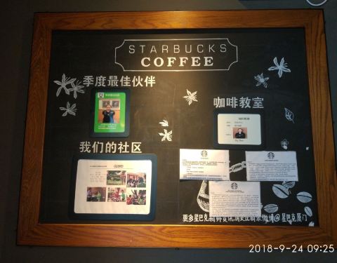 一大早又来星爸爸喝咖啡,咖啡厅没什么客人,安安静静的,环境非常适合我。女服务生非常熟练的帮我点完餐,还给我提出了实惠经济的点餐建议,必须给个大赞!去二楼洗手间才发现别有洞天,原来餐厅二楼如此宽敞,还有沙发座位,在小小调理台的展板上看到,为我服务的女服务生,还是季度最佳伙伴呢,我真是好幸运啊~