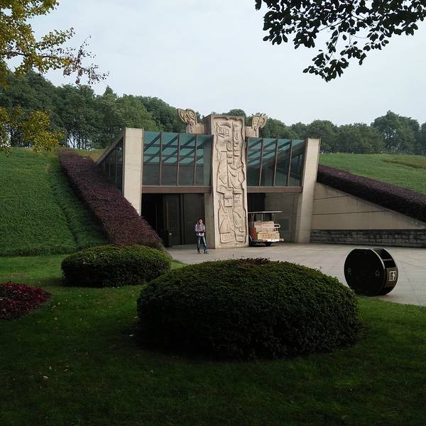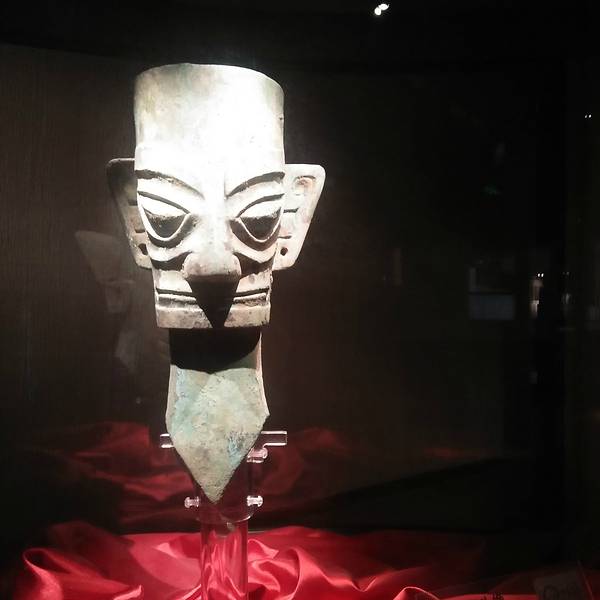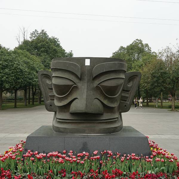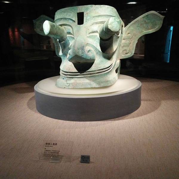 门口有一个很大的面具铜器,有点像外星人的模样!建议如果喜欢古蜀文化的人可以去看一下,很值得一看!可以学到很多知识。 展开