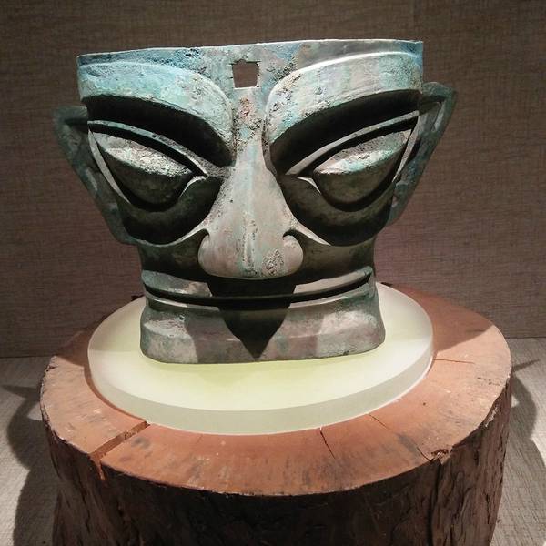非常宏伟高大随后我来到了青铜馆一进门就是一个巨大的青铜人面像