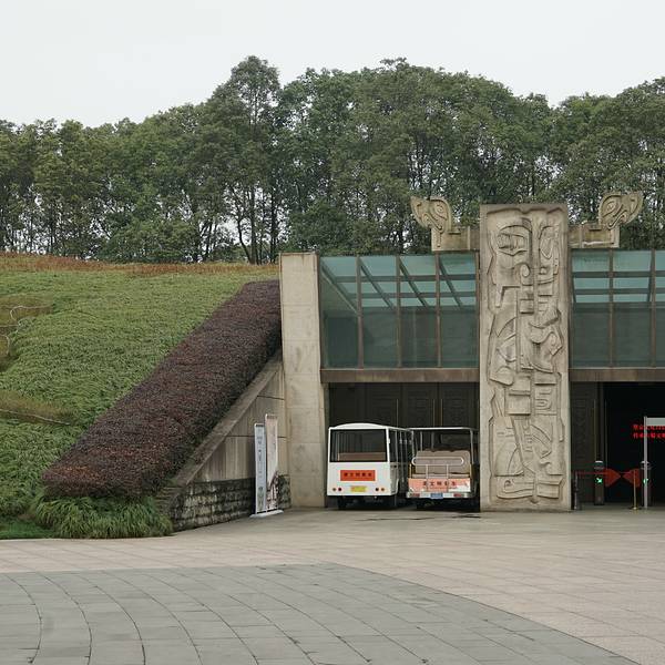 三星堆博物馆位于全国重点文物保护单位三星堆遗址东北角,地处历史文化名城四川省广汉市城西鸭子河畔,南距成都38公里,北距德阳26公里,是我国一座大型现代化的专题性遗址博物馆。博物馆于1992年8月奠基,1997年10月正式开放。 三星堆古遗址分布面积12平方公里,距今已有5000至3000年历史,现有保存完整的东、西、南城墙和月亮湾内城墙。三星堆古遗址被称为20世纪人类伟大的考古发现之一,昭示了长江流域与黄河流域一样,同属中华文明的母体,被誉为“长江文明之源”。 三星堆文物是宝贵的人类文化遗产,在中国浩如烟海蔚为壮观的文物群体中,具有历史科学文化艺术价值和富有观赏性的文物群体之一。在这批古蜀秘宝中,有许多光怪陆离奇异诡谲的青铜造型,有高2.62米的青铜大立人、有宽1.38米的青铜面具、更有高达3.95米的青铜神树等,均堪称旷世神品。而以流光溢彩的金杖为代表的金器,以满饰图案的边璋为代表的玉石器,亦多属前所未见的稀世之珍。 三星堆博物馆现有两个展馆,其展示面积近12000平方米,分为第一展馆(综合馆,陈列金、铜、玉、石、陶等类文物)和第二展馆(青铜专馆)。两大展馆陈列规模宏大,布局考究,内容与展线节奏动静结合,波澜起伏,以其融知识性、故事性、观赏性、趣味性于一炉的诠释方式,有力的揭示了三星堆文物的深刻内涵,集中反映了三星堆文明的辉煌灿烂,给人以身临其境、故国神游的感觉。 三星堆博物馆占地面积约33公顷,绿化面积达80%以上,馆区内环境优美、布局动静得宜,曲径敞道,垂柳依依、古蜀奇葩、湖光岛影无处不体现了人文与自然完美结合、飘逸自然、浑然天成的川西园林特色。博物馆主体建筑外形追求与地貌、史迹及文物造型艺术相结合的神韵,融原始意味和现代气息为一体。一展馆建筑为半弧形斜坡生态式建筑,张扬人与自然和谐共生的人文精神,二展馆建筑为三部一体的变形螺旋式建筑,其整体具有“堆列三星”与“人类历史演进历程”的双重象征,馆外还有气势灰宏的仿古祭祀台和供现代文体活动的大型表演场与展馆建筑遥相呼应,表达了三星堆文化苍古雄浑、博大精深的历史意蕴。