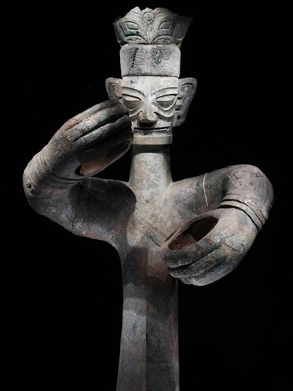 青铜神树、纵目面具、大立人,向我们诉说着千年前的青铜工艺巅峰,其上的精美雕塑不仅还原了遥远的传说,也展示了先祖们高雅的审美造诣;