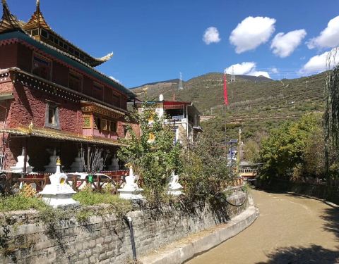 📍途中有一个地方会停 一会儿,一个穿白大褂的人上车说高反多么多么可怕,...✔️:卓克基土司官寨。到这我两就体会到了高反,身体开始有点不舒服了。我俩提前一天吃的红景天,好像没啥作用。第一次见到格桑花。