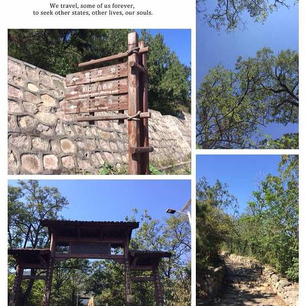 我只顾观察这个停车场,心中一直在懊恼没能骑车上来。殊不知就在自己走神儿的工夫,已经偏离了自己要登顶的阳台山主峰,而是沿着停车场的另一端出口向前走去,第一经过的就是“金山寺”。