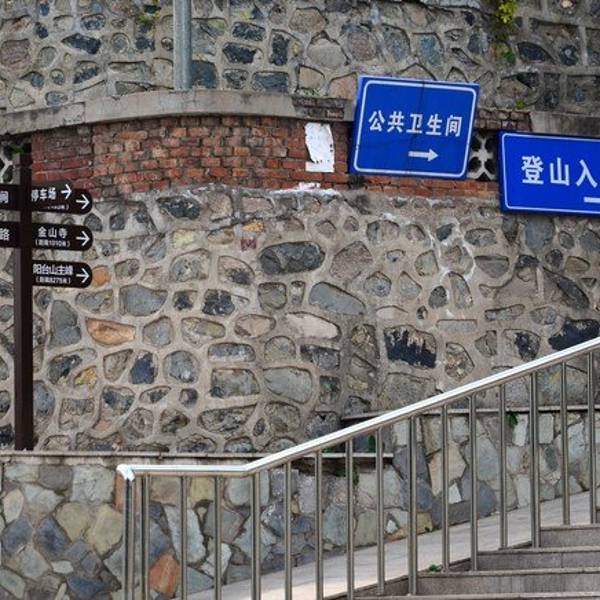 走着走着,来到一个三岔路口。还不错,景区里有明明白白的指示牌提醒游客:我来的是金山寺的方向;左转是“阳台山景区”方向(那我刚才走了半天难道不是阳台山景区里吗?);右转是鹫峰景区方向!