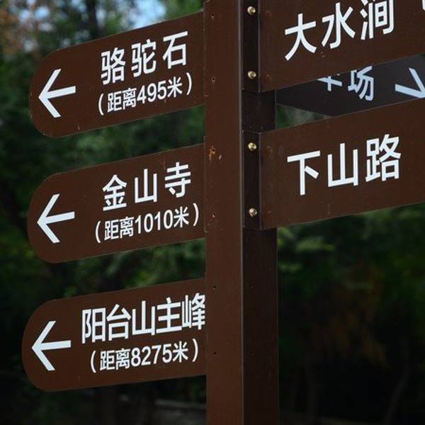 金骆驼 一进入景区大门,马上就有指示牌显示“登上步道”,而且标记什么景点距离多远,很人性。而且!人都去哪儿了我从鹫峰景区出来,查看导航--距离阳台山景区仅有1.8公里?!