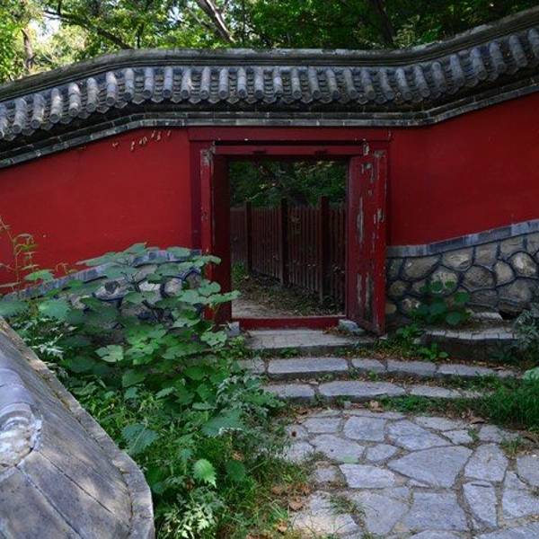 金山寺的旁边有个红色的院门,我看没有其他出路,就从此院门进入通过。