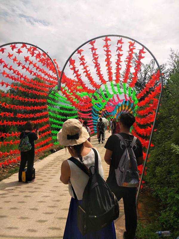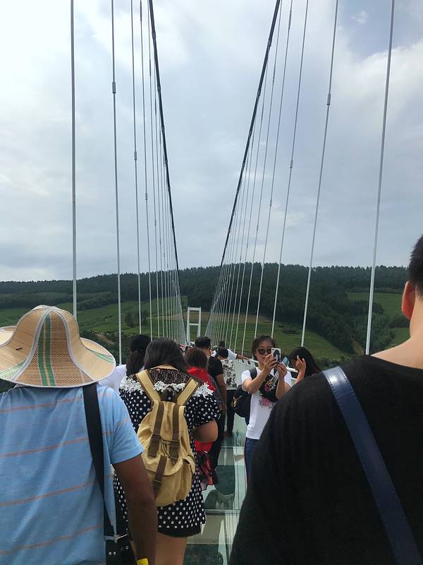 忙碌了一周,到了周末就想好好放松一下,查了周边旅游景点,和朋友决定去本溪大峡谷看看。景区离市区比较远,所以建议自驾游或者跟团游,我选择跟团游,票价110元。本溪南芬大峡谷是2018年新开发的景区,玻璃吊桥是景区的一大亮点,全长369米,距谷底最大落差156米,有东北小张家界之称。长度和落差可以和张家界吊桥媲美,但宽度不足,只有张家界吊桥的一半。来体验玻璃吊桥的游客比较多,即使风很大,玻璃吊桥会摇晃,因为人多的原因,也不会感觉害怕。大家都是走走停停,感受玻璃吊桥带给心理上的刺激,在桥的另一端,还有5D玻璃炸裂效果,但效果不真实,并不能让人害怕。站在玻璃吊桥上远眺,目之所及皆是绿色,整个景区的美景一览无余,茂密的丛林,蜿蜒的山路,犹如一条栩栩如生的龙盘踞在此地,壮美秀丽。在吊桥上向下望,有一处瀑布很吸引人,从吊桥上下来后,直奔瀑布而去,站在瀑布下,听着瀑布有如黑白电视机的声音,分外凉爽。景区内种植一大片花,非常茂盛,层层叠叠,形成一片花海,不少游客在花海中拍摄美美的照片。在步行路上,还会有一些小风车,在风的作用下,飞速转动,发出沙沙声。景区内还有玻璃隧道,不包含在门票内,需要单独购买,玻璃不是很滑,开始往下滑的时候,需要自己身体去向前探,到后来拐弯处会好一些。景区内路都很好走,所以不会太费体力,置身于大峡谷内,整个人都能融入到大自然中,感觉特别放松,推荐那些无法去远处但还比较想出去玩的人。