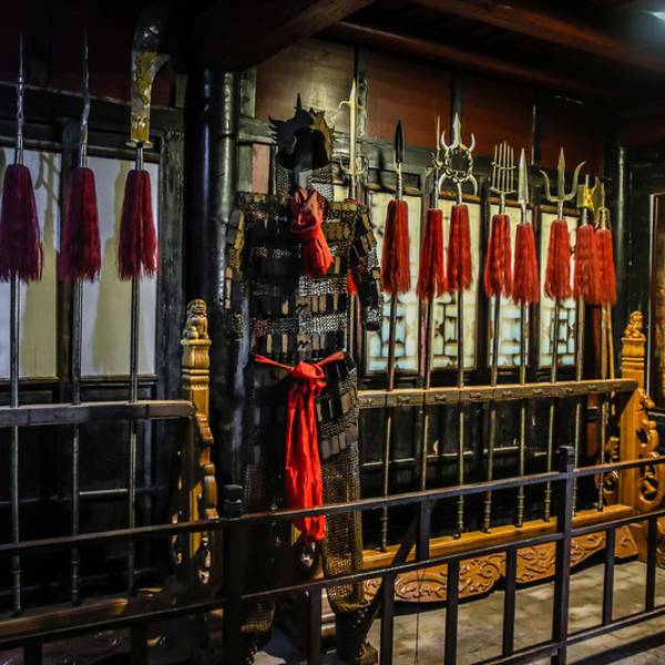 ...发展史,以及在明清时期,中国有名的十大镖局、十大镖师和走镖过程中的轶事趣闻,还有武术门派的发展再往北一点就是第⑬景点,镖局博物馆,主要介绍中国镖局发展史,以及在明清时期,中国有名的十大镖局、十大镖师和走镖过程中的轶事趣闻,还有武术门派的发展。大门园内防盗的网,上面挂着铃铛鞘,空心木头里面藏...再往北一点就是第⑬景点,镖局博物馆,主要介绍中国镖局发展史,以及在明清时期,中国有名的十大镖局、十大镖师和走镖过程中的轶事趣闻,还有武术门派的发展。大门园内防盗的网,上面挂着铃铛鞘,空心木头里面藏着银子后院练武场 展开