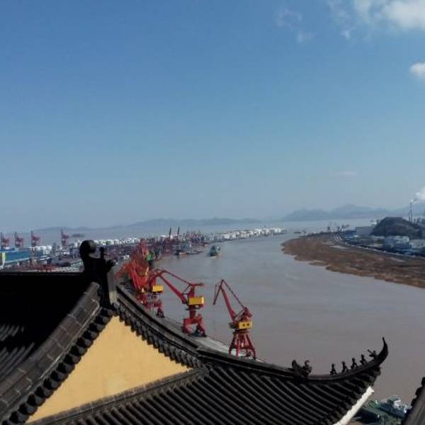 站在宝塔上,镇海风光一览无余,非常壮观,不愧为入海口大港口