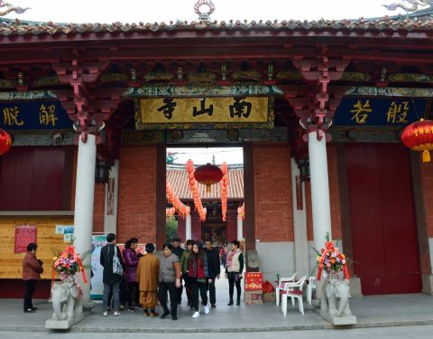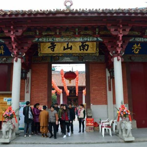 漳州非常悠久的佛教名寺。建于明朝,因为最初不是作为佛寺而建,所以和一般的佛寺在建筑布局上略有不同。南山寺原是明朝太傅陈邕为自己告老还乡后所建的养老之所。因其朱红色的外墙而被告发其有叛变之心。后其女陈金华建议父亲将其改为寺庙,自己亦出家为尼,才使全家躲过一劫。