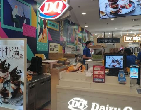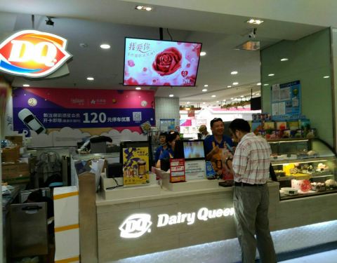 DQ一个连锁品牌的。在外面的热闹地段都可以看到身影。东西有点小贵,冰淇淋的奶味蛮足的,就是怕血脂高不敢多吃,舔几口过过嘴巴瘾吧!店铺不提供发票的……
