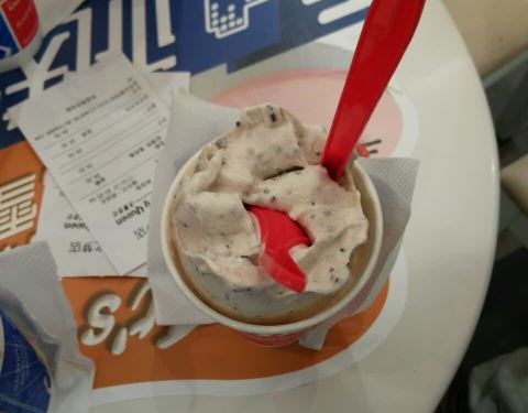 他家的暴风雪系列是招牌,而且量也蛮足的,情侣的话2人点一份中杯就差不多了,口味选择丰富,除了几款经典推荐搭配外还可以自由组合,如果有选择障碍的话可以考虑他每期推出的新品搭配,我个人一般会选择抹茶口味加核桃杏仁等坚果或者奥利奥口味加奶油,另外他家经常会有一些组合优惠活动。