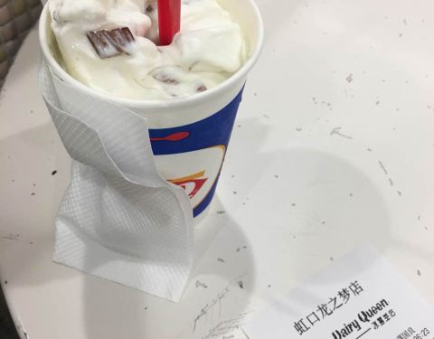 东西有点小贵,冰淇淋的奶味蛮足的,就是怕血脂高不敢多吃,舔几口过过嘴巴瘾吧!DQ一个连锁品牌的
