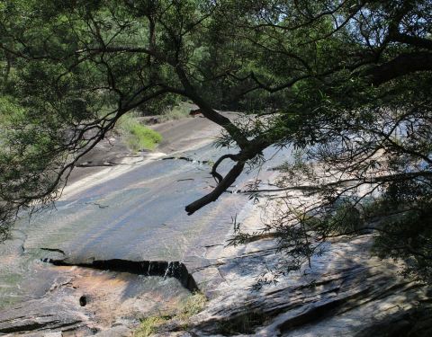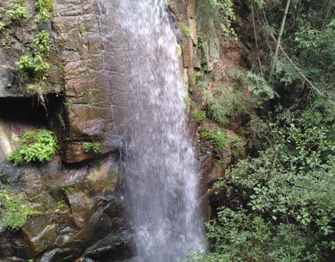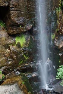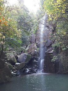 从华厅停车场往下,沿着去剑池方向的小路一直走,途中都有小溪水流往下延伸,过了剑池后,水势依山而下,增大的落差形成了比较有气势的水瀑,在山林间很是突出,差不多到底之处,建了一个供游人停歇和观景的亭子...