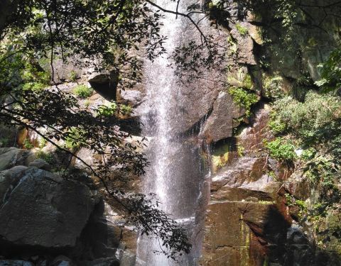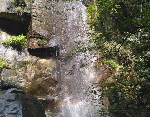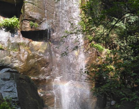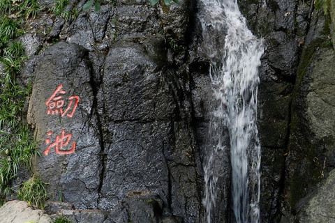 从华厅停车场往下,沿着去剑池方向的小路一直走,途中都有小溪水流往下延伸,过了剑池后,水势依山而下,增大的落差形成了比较有气势的水瀑,在山林间很是突出,差不多到底之处,建了一个供游人停歇和观景的亭子,就是观瀑亭,这里很值得走走看看,虽然比较花力气,但既然来了就不要错过。