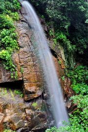 由于附近有一条由山泉所汇聚而成的瀑布而得名,亭前立着投林飞鸟,出岫闲云的对联。一个闲字道出了多少人间尘世的奥妙。每当岚气升腾,水中虹光霓彩,是天上,是人间。