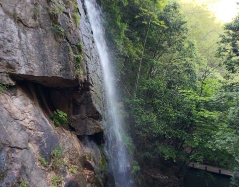 暑假期间与朋友一起带孩子自驾莫干山游玩,观瀑亭是剑池景区的景点,风景秀丽,孩子们很喜欢这里,雨季瀑布也非常漂亮。