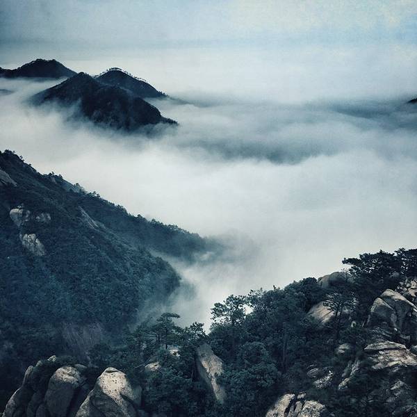 第二天一早起来发现依旧雾气朦胧,那时候我们几乎是抱着白来一趟的心了,后来酒店的服务生跟我们说,山上的雾气是很奇怪的,有时候半山腰上雾气很重,但到了山顶却一点都没有,又时候到了山下一点雾气都没有,这要看运气!于是我们就试着运气走入浓雾之中~~~
