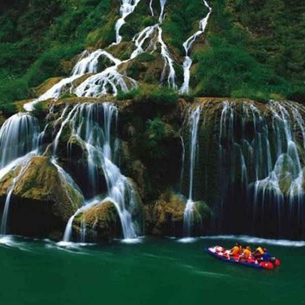 没有照相,因为一路上都有人喷水,不敢拿出来啊。船家开到一半的时候,会在瀑布前休息一会儿,再开始。漂流全程有一个多小时,途中有各种大小不同的瀑布,感觉就是“船在江中走 人在画中游”,风景太美,感觉没去天门山是值得的。图片就用别人的了、、
