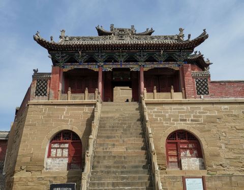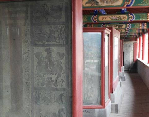 李自成行宫在保护名录中叫盘龙山古建筑群。盘龙山,果然名不虚传,一入大门,仿佛看到巨龙俯卧,龙头仰起。主建筑群在山上,沿石梯而上,能环视整个米脂县城。建筑群规模本身不大,几进院落就到头了。目前扮演的是博物馆的角色,除了李自成生平展示、米脂历史著名女性介绍,还有米脂出土的东汉画象石,两千多年前的各类场景描绘得栩栩如生,这些画象石其实极其珍贵,可是文物旁几乎没什么介绍。另外,去之前一直在思考为啥李自成行宫在李自成战败后没有被毁掉,后来才知道原来米脂百姓把李自成行宫改成了道观,把建筑群保护了下来,群众的胆识和智慧真是令人十分敬佩。