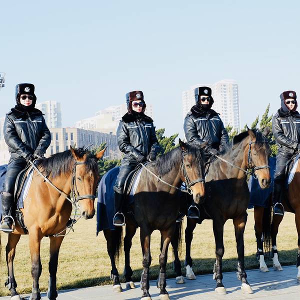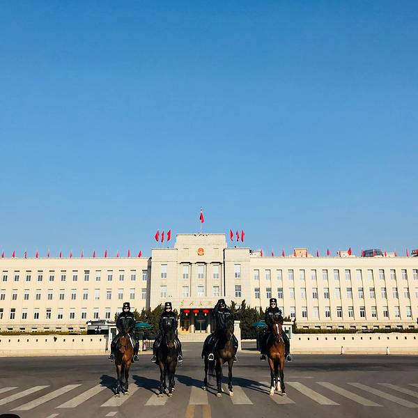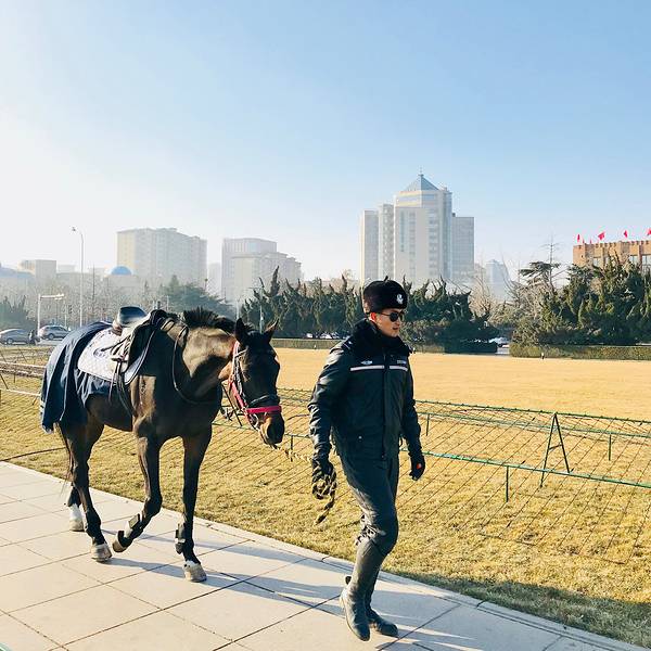 大连有一道独特的风景线:女骑兵。据说在节假日或周末的早上9:30-10:30左右会出现在人民广场。所以,又跑过去碰运气。还好,遇上了,没有扑空。女骑兵中新增了男骑兵。哈哈哈