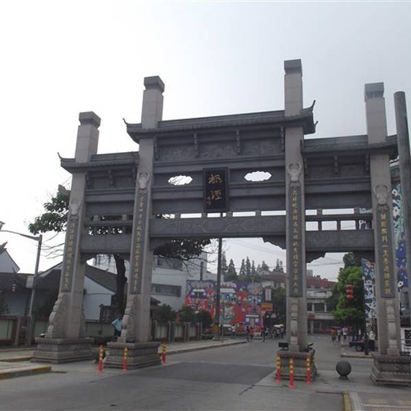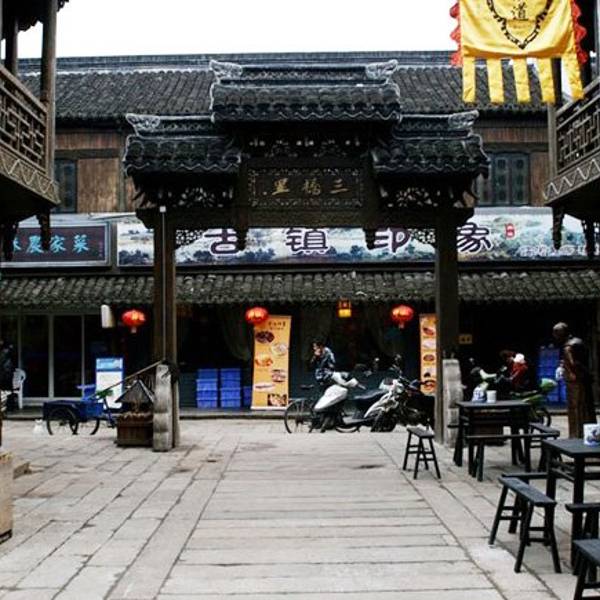 枫泾古镇位于上海市西南角,是典型的江南水乡。早在2000多年前,枫泾古镇已有百姓生活,镇内的界河是春秋时吴国和越国的分界河,由于地跨吴越两界,枫泾古镇被誉为“吴越名镇”。古镇河道纵横,桥梁有52座之多,其中建于元代的致和桥,有近700年历史。比起其他热门的江南水乡,枫泾没有这么多游客,你可以在这里悠闲地欣赏小桥流水的风景。古镇有两条主要的街道,一条是南段叫南大街、中段叫中大街、北段叫北大街的街道(虽然分段起了三个名字,但它们是连起来的一条街),还有一条是和平街,两条街在枫泾三桥处交汇,成“丁”字型。枫泾三桥则是古镇的中心,两河交汇处,能同时见到清风桥、竹行桥、北丰桥三座桥。枫泾是金山农民画的发源地,你可以在南大街圣堂弄的金山农民画展示中心欣赏到一幅幅具有乡土气息的画作。古镇上的画馆和名画家祖居不少。北大街的丁聪漫画陈列馆内摆放着丁老先生用过的家具,二楼则能看到讽刺漫画,把人物刻画得惟妙惟肖。和平街的吕吉人画馆能看到陈逸飞同班同学吕吉人的画作,程十发祖居有许多程老先生的中国水彩画。一般游客从古镇南边的主入口进,走到南大街,沿着河开始慢慢逛古镇。从南大街往东北方向走,经过致和桥就到了中大街。中大街头上能看到吴越界记,立着界碑,面前一条不起眼的小河就是以前吴越的分界线。继续往东北走,过了枫泾三桥是北大街。北大街上可以参观始建于明代有红色墙壁的施王庙、丁聪漫画陈列馆等。在南、中、北大街上还会经过有屋棚的长廊,古镇上有几段这样的长廊,古色古香,晴天遮阳,雨天能挡雨。踩着青石板路,回到枫泾三桥的地方,接着去游览另一条街和平街。首先参观三百园(百篮馆、百灯馆、百行馆),边上是吕吉人画馆。往东南走一点,枫泾人民公社旧址比较值得一看,留有那个年代的老式热水瓶、电话,墙上画着红太阳。再往前走是一面临街、一面临河的枫泾古戏台,每逢旅游旺季、节假日,戏台上有免费的传统戏剧节目表演,在戏台对面的晨社茶馆挑个临窗座位坐下,一边品茶,一边听戏,十分惬意。沿街走到底参观完程十发祖居,最后,过桥到河对岸的生产街,还有一处近代消防机构旧址——东区火政会。枫泾古镇南大街的头上有游船码头,你也可以坐船体验水乡风情。古镇上的美食首推丁蹄,南大街致和桥边上有一家丁蹄作坊,介绍丁蹄在古镇上的发展和制作工艺。枫泾三桥附近生产街上的唔呶喔哩酒家(枫泾方言,自己家里的意思)是古镇上环境不错的一家餐馆,里面有长长的天井造成小桥流水的模样,田螺塞肉、吴越豆腐是他家招牌菜。生产街临河的长廊里商铺林立,出售枫泾烧卖,芡实糕等,其中熏拉丝很有特色,上海郊区土话“熏蛤蟆”的意思,口味很赞,不过先要有胆量品尝。距离古镇约4公里多、靠近中洪路那还有个中国农民画村,也挺有特色,可与枫泾古镇一并游览。
