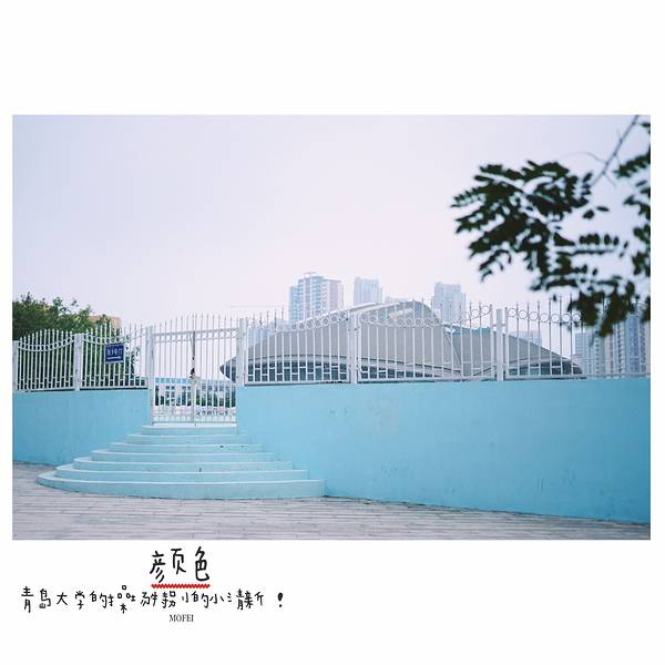老远处就被这清新的蓝色围墙吸引着,我们便朝着这个方向前行。如果说青岛大学并没有什么惊艳之感,那这个清新文艺的操场一定是个亮点。