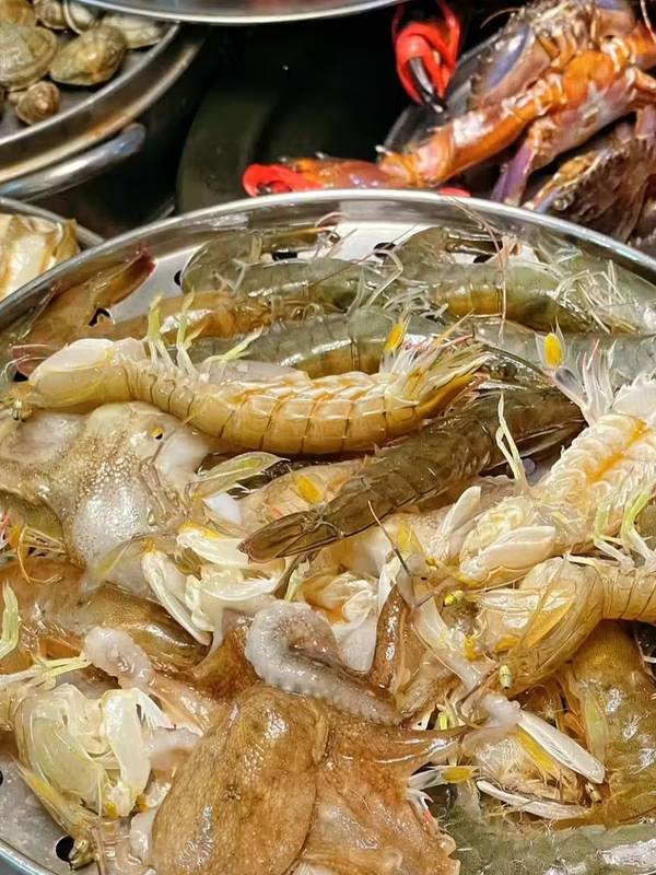 海鲜:本来想去市场买海鲜去加工,但是怕被宰。我们选择了盒马鲜生哈哈,买了老虎虾、生蚝、鲍鱼、海螺,非常鲜美。