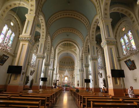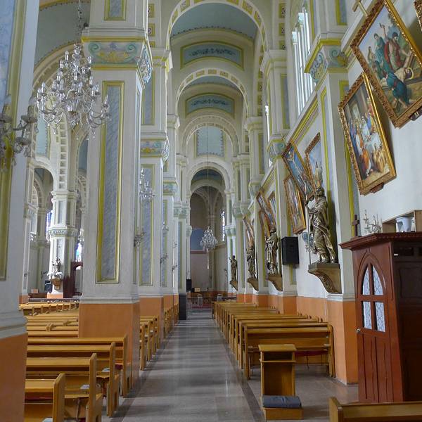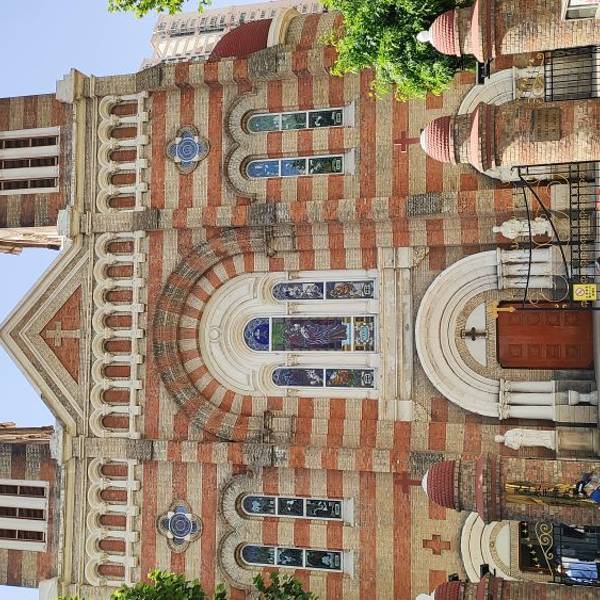 西开教堂位于繁华的滨江道商业街的南端,始建于1917年,是天主教天津教区的主教堂。教堂建筑风格庄重大气,教堂内的雕塑也都繁复精美,另外弥撒和天主教节日的活动对外开放,可以参与其中,感受浓厚的宗教氛围。 外部参观 西开教堂外部用红黄相间花砖砌成,三座呈品字形排列、高耸入云的塔楼上浮盖着绿色铜片,经过岁月的冲刷,斑驳的绿色在阳光的照耀下反而闪烁出具有历史感的光彩,塔楼顶上各有一个青铜十字架。 内部建筑 走进西开教堂,映入眼帘的首先是湖蓝、白色、淡黄构成的内部主色调,给人一种清新的感觉,只在恰到好处的位置上雕刻着各种花纹,14根立柱从门口排列到祭台,气度不凡。教堂四周列着一座座精美的教徒铜像,墙壁上则挂着一幅幅记述耶稣受难故事的油画,教堂内还有圣母、耶稣、天使等的彩色塑像。另外,一扇扇彩绘玻璃窗也很迷人。在教堂的一侧你会发现一个木质小房间,顶上有小小的十字架,那是供神甫接待信徒忏悔告解用的“告解亭”。 宗教活动 西开教堂的弥撒活动对外开放,非教徒同样可以参加,不过弥撒时间不可以在教堂里跑来跑去到处参观,静静地坐在后排,不能大声喧哗、不要拍照,去感受繁华都市中内心的那一份宁静就好。另外也有很多天主教节日的活动,也和弥撒一样对外开放。具体弥撒和天主教节日活动时间可见官网。