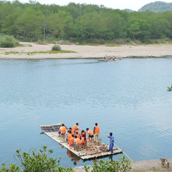 两边的风景其实一般,略无聊,第一次去就当重在体验一个漂吧一个竹筏5人,漂流的时候水会漫过竹筏一点,鞋子很容易湿,建议凉鞋或者穿个高底的鞋。我一开始穿的运动鞋,怕被打湿,坐的非常拘谨,结果还没漂一半,袜子湿了,干脆就脱了放边上,赤脚划水,反而自在。 如果是...一个竹筏5人,漂流的时候水会漫过竹筏一点,鞋子很容易湿,建议凉鞋或者穿个高底的鞋。我一开始穿的运动鞋,怕被打湿,坐的非常拘谨,结果还没漂一半,袜子湿了,干脆就脱了放边上,赤脚划水,反而自在。 如果是下午太阳大的话,建议带个帽子,竹筏漂的慢,太阳会晒的你恨不得自己过去撑… 划船师傅说要漂一个半小时,实际一个小时差不多。两边的风景其实一般,略无聊,第一次去就当重在体验一个漂吧。 展开