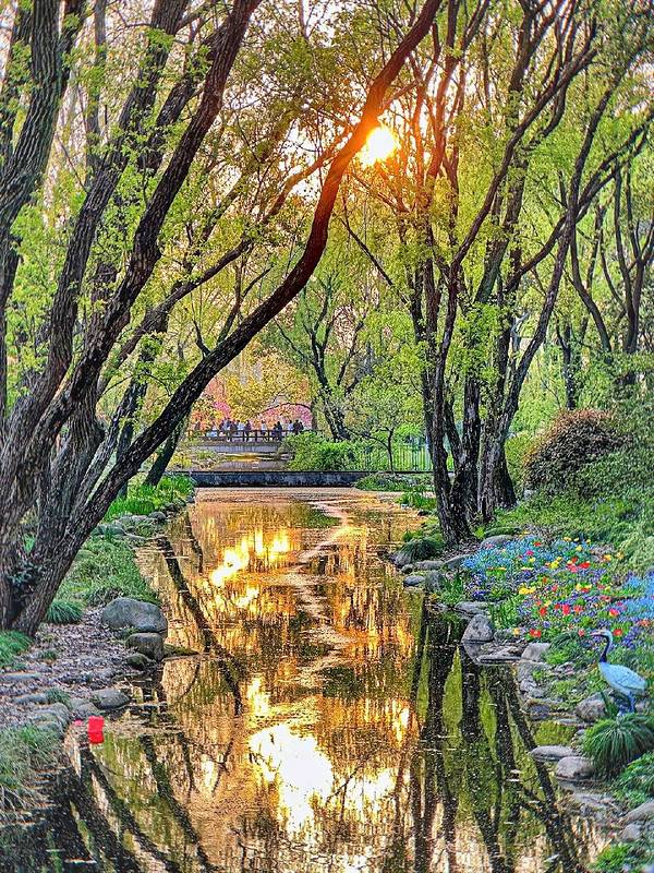 2. **植物多样性**:园内有树木30多万株,包括90多个品种,形成了多样化的植被环境。这些植物不仅美化了城市景观,也为市民提供了一个亲近自然的地方。