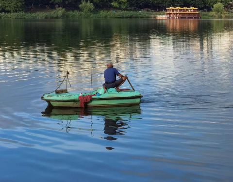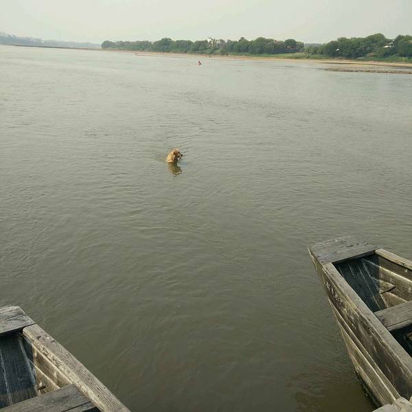 这里还行!这只狗狗好厉害!去江里捡瓶子玩,上面还有乌龟卖!
