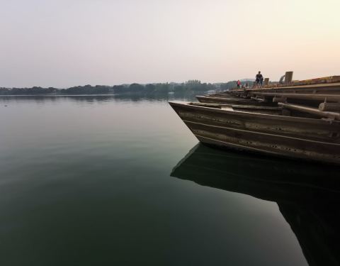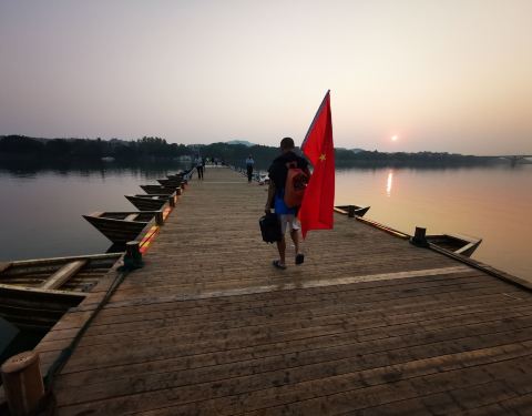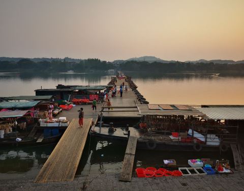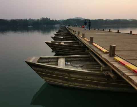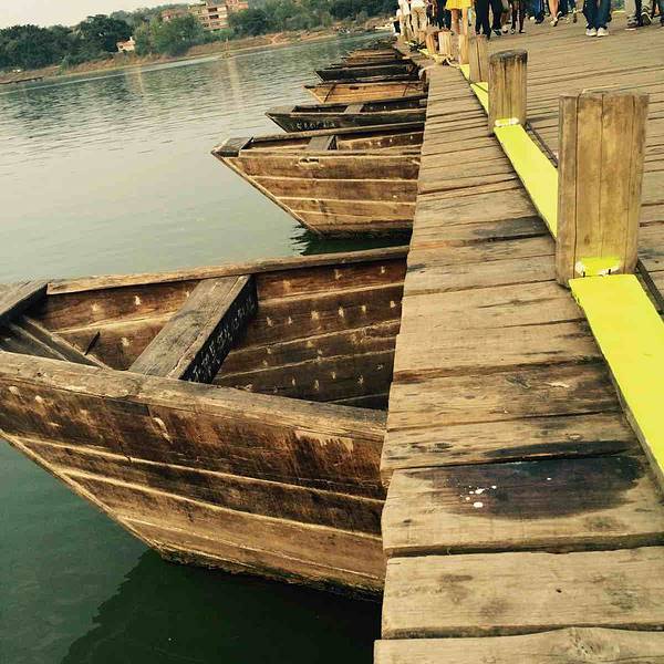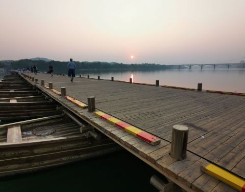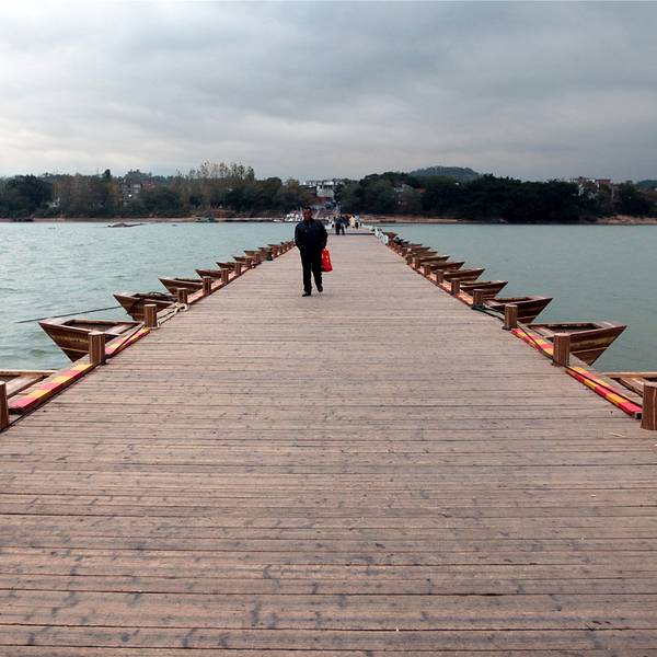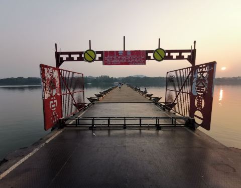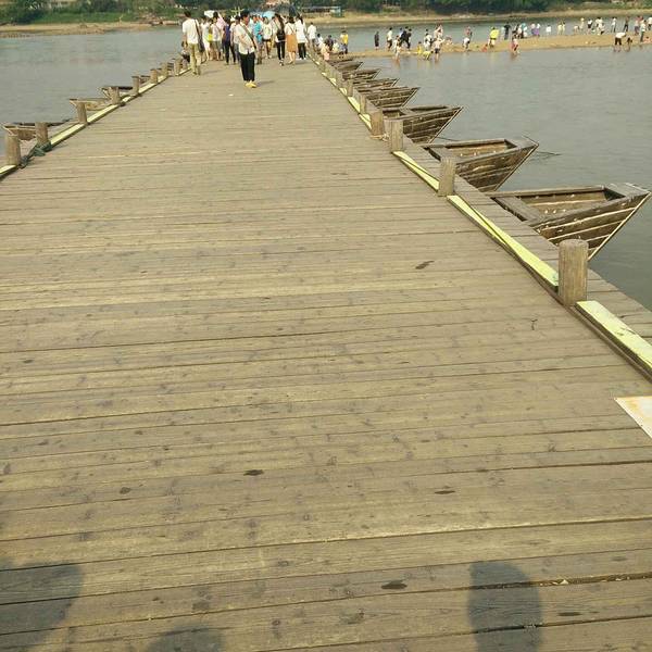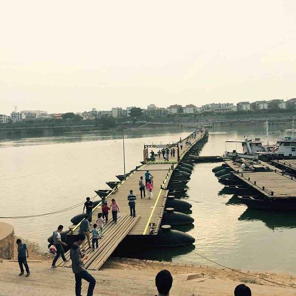 古浮桥的简单和支援的船架设计尽显古人的智慧!值得一游!风景优美…