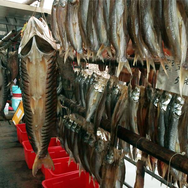 靠山吃山,靠水吃水。这里的渔家平常靠打鱼为生,打到鱼后新鲜的能现卖最好,卖不去的就腊起来慢慢的卖。